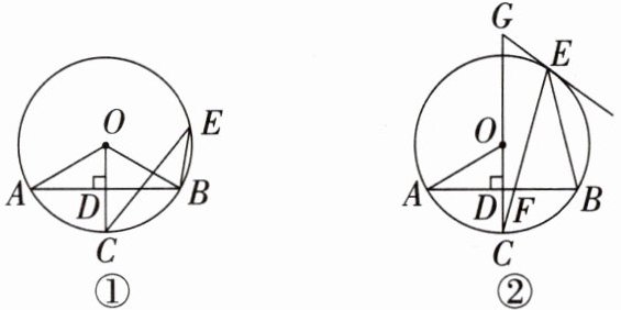 (2)如图②,$CE与AB相交于点F$,$EF = EB$,过点$E作\odot O$的切线,与$CO的延长线相交于点G$,若$OA = 3$,求$EG$的长。