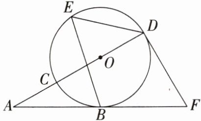 (2)若$\odot O的半径为3$,点$F在AB$的延长线上,且$BF = 3 \sqrt { 3 }$,求证:$DF与\odot O$相切。