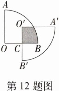 12. 如图,扇形$OAB$中,$\angle AOB = 90°$,$OA = 4$,点$C为OB$的中点,将扇形$OAB绕点C顺时针旋转90°$,得到扇形$O'A'B'$,则图中阴影部分的面积为(