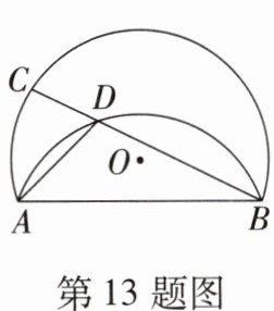 13. 如图,$\odot O$的半径为2,$AB$是弦,点$C在优弧\overset{\frown}{AB}$上.将$\odot O沿AB$折叠后,连接$CB$,$CB交劣弧\overset{\frown}{AB}于点D$,连接$AD$.若$\angle ADB = 108°$,则$\overset{\frown}{ADB}$的长是______.