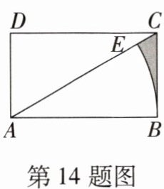 14. 如图,在矩形$ABCD$中,$AC = 6$,$BC = 3$,以$A$为圆心,$AB$长为半径画弧,与$AC交于点E$,则图中阴影部分的面积为