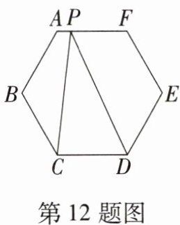 12. 如图,在正六边形ABCDEF中,点P是AF上任意一点,连接PC,PD,则△PCD与正六边形ABCDEF的面积之比为____.