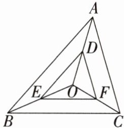8. 如图,已知$O是\triangle ABC$内一点,$D$,$E$,$F分别是OA$,$OB$,$OC$的中点. 求证:$\triangle ABC\backsim\triangle DEF$.