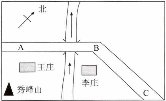 6. B【解析】据图可知,该图有指向标,故应利用指向标来定方向。秀峰山位于王庄的南方,小河的大致流向是从东南向西北流,汽车沿公路从A到B行进的方向是从西南向东北。故选B。