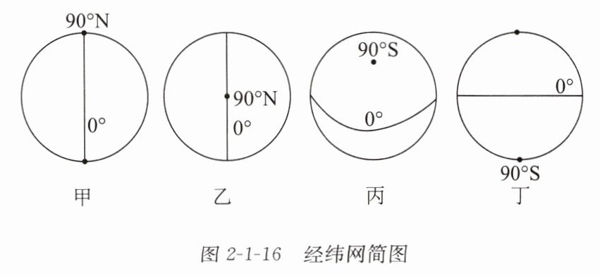 [2024·江苏徐州中考二模]贝贝是个小小地理迷,他根据自己对地球仪的观察绘制了如图 2 - 1 - 16 所示的经纬网简图。据此回答 6、7 题。