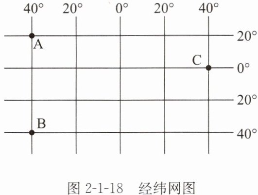 11. 读经纬网图(图 2 - 1 - 18),回答下列问题。(5 分)