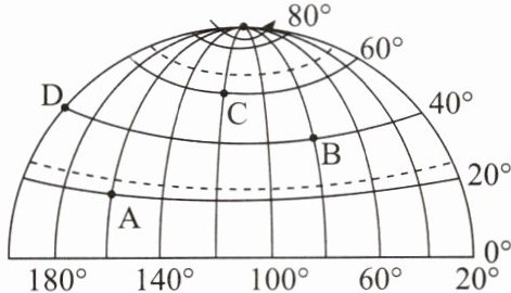 纬度地区。(5)一个人从 D 点出发,向正东方向行走,在不改变方向的前提下,(理论上)