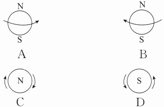 A 【解析】地球自转的方向是自西向东,在北极上空观察为逆时针,在南极上空观察为顺时针。故选 A。