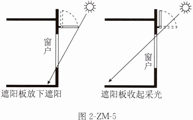 [2024·江苏徐州阶段检测]江西省某中学研究性学习小组,设计了可调节窗户通阳板,实现教室良好的遮阳与采光。图2-ZM-5示意遮阳板设计原理。读图,回答8、9题。