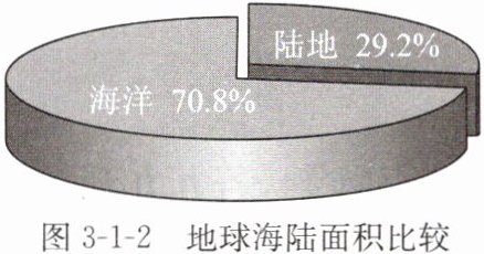 ”。航天员从太空看到的地球表面,大部分是蔚蓝色的,因此科学家又把地球称为“水的行星”。2. 海陆分布