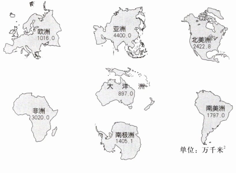 个大洲,面积由大到小的顺序是:亚洲、非洲、北美洲、南美洲、南极洲、欧洲、大洋洲。2. 七大洲的分布