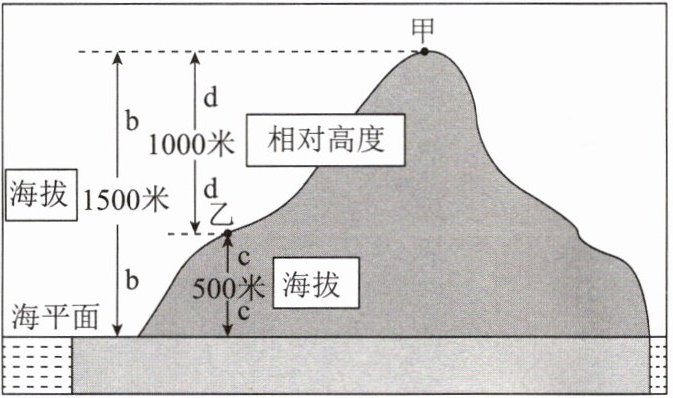 (2) 地面某个地点高出另一个地点的垂直距离叫