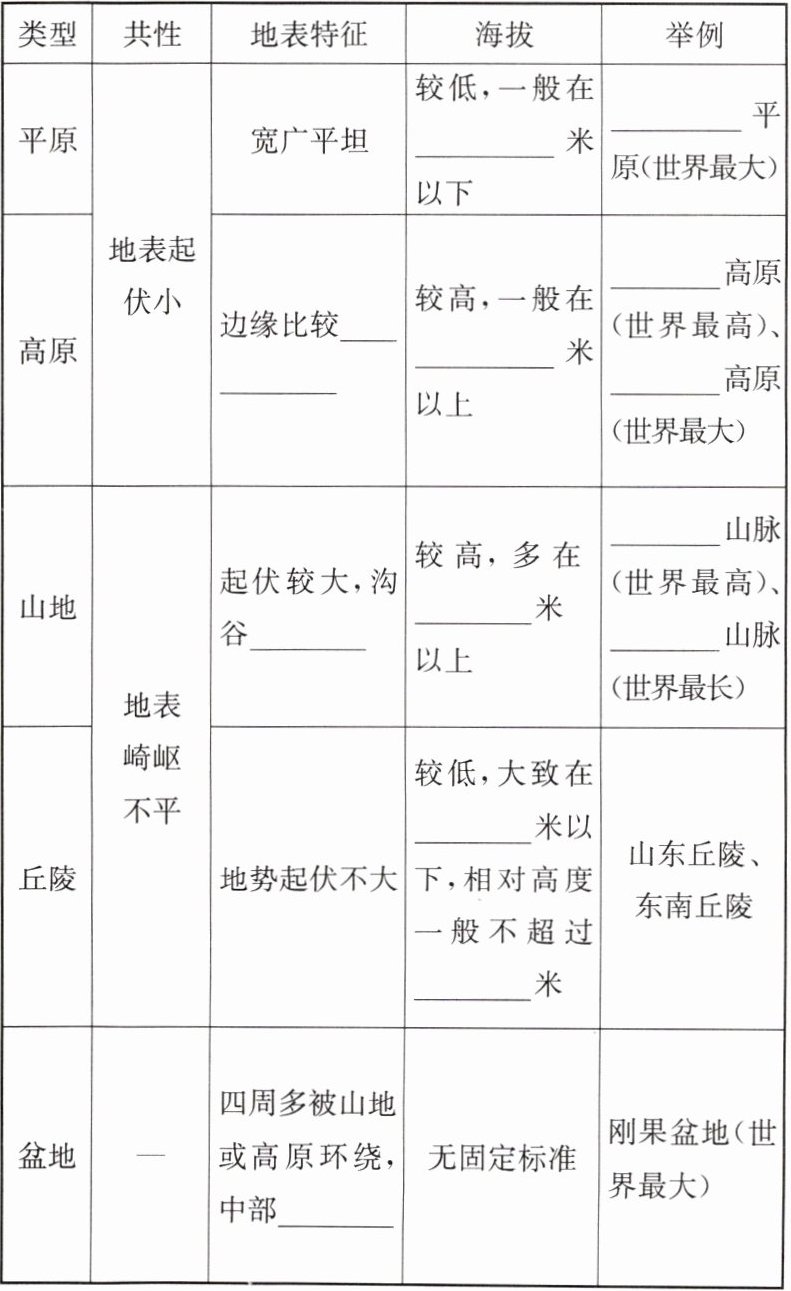 200 亚马孙 陡峭 500 青藏 巴西 较深 500 喜马拉雅 安第斯 500 200 相对低平