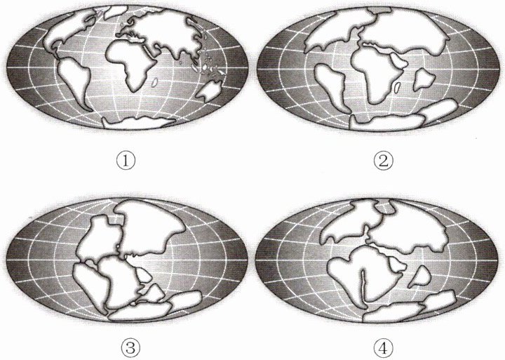 德国地球物理学家魏格纳提出了大陆漂移假说。图3-3-2是不同时期大陆分布示意图。读图,回答4、5题。