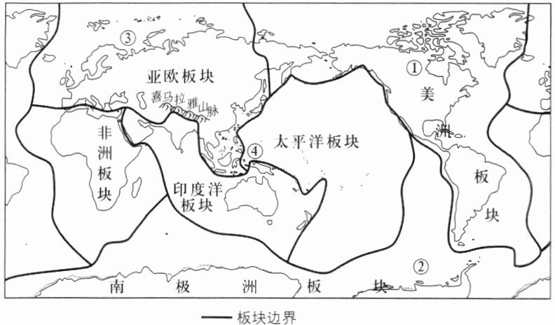 喜马拉雅山脉是世界上海拔最高的山脉,它的形成与板块运动有关。读六大板块分布示意图(图3-ZM-9),回答13~15题。