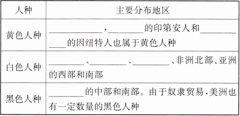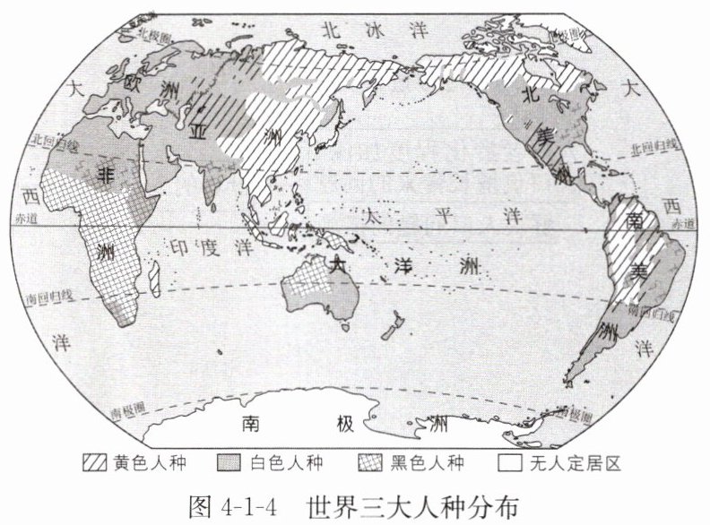 (2)类型:世界人口主要分为______、______和______三大人种;因人种间的通婚,还形成了______。
