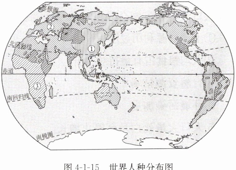 材料一:世界人种分布图(图4-1-15)。