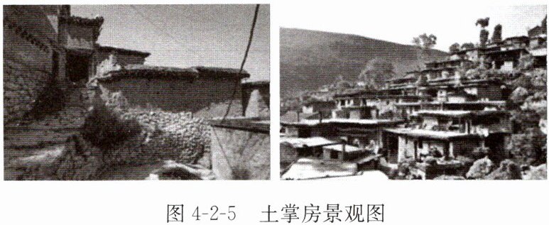 [2024·江苏徐州中考模拟]土掌房主要分布在我国云南的高山和河谷地带,以石为墙基,用土坯砌墙或用土筑墙,墙上架梁,梁上铺木板、木条或竹子,上面再铺一层土,经洒水抿捶,形成平台房顶,不漏雨水,多为平房,不开窗或二层开小窗,屋内设有火塘。全村房屋墙连墙,下一家的屋顶即为上一家的场院,层层而上,直达山顶,堪称民居建筑文化与建造技术发展史上的“活化石”。图4-2-5是土掌房景观图。读图,回答5、6题。