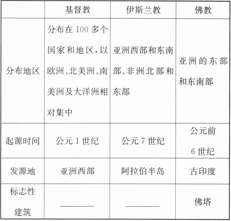 1. 目前,在世界上传播范围广、影响力大、教徒众多的三大宗教是