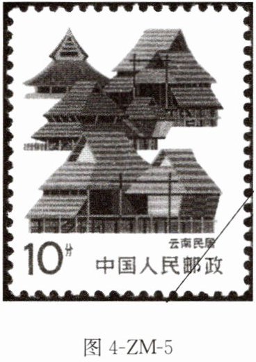邮票上的民居——云南民居:傣族竹楼。竹楼分上、下两层,屋顶为双斜面呈“人”字形;青竹做的地板富有弹性,阳光和风经竹缝透过,雅致舒适。读图 4-ZM-5,回答 8、9 题。