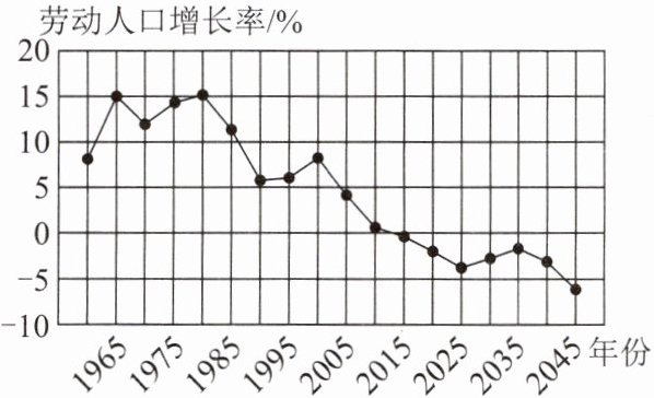 3. 读我国 1960—2045 年劳动人口增长率变化图(含预测)(图 4-ZM-10),根据目前劳动人口增长率的变化趋势,下列说法正确的是(