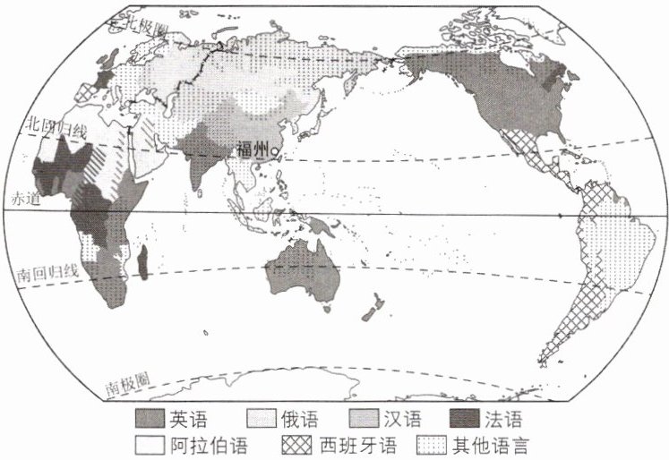 10. [江苏徐州泉山区阶段检测]福州是一座历史悠久的城市,也是我国首批对外开放的沿海港口城市之一。有同学对福州这座城市产生了浓厚的兴趣,对福州市的语言、人种进行了探究。读图 4-ZM-14 和图 4-ZM-15,补充完整这位同学的探究报告。