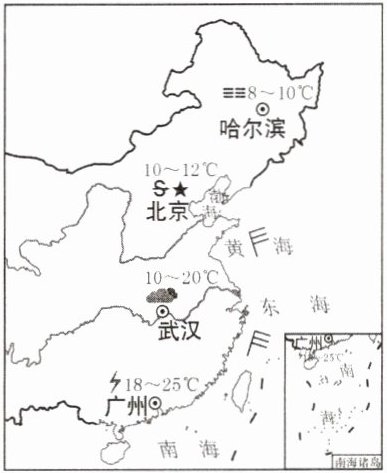 12. 读我国东部地区某日天气预报图(图5-1-5),回答下列问题。(7分)