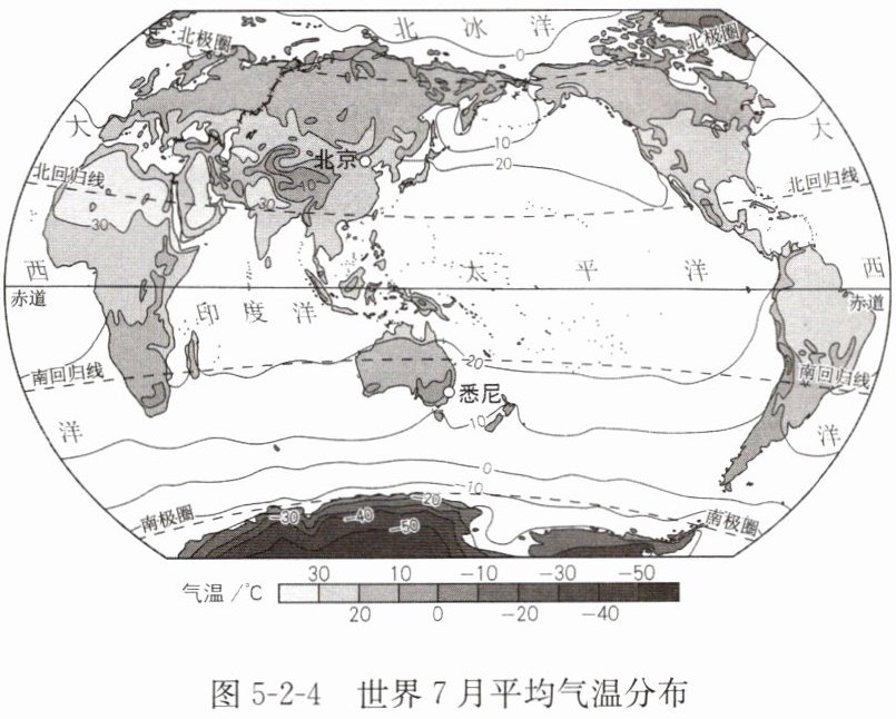 。(3)图5-2-2中北半球10℃等温线在亚欧大陆中部向南凸出,发生大的弯曲,因为这里是