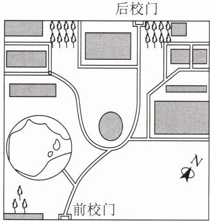 2. 如果绘制的学校平面图比例尺为 1:3000,并测得图中前校门到后校门的图上距离约是 5 厘米,则实地距离大约是(