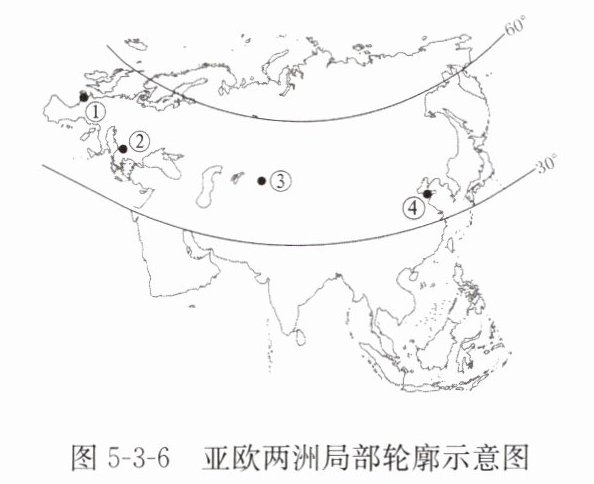 [江苏徐州睢宁县阶段检测]图5-3-6为亚欧两洲局部轮廓示意图。读图,回答4、5题。