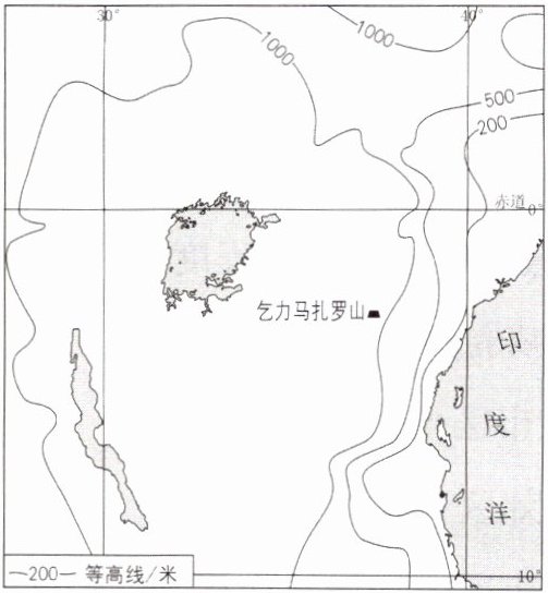 乞力马扎罗山海拔5895米,是非洲最高峰,有“赤道雪山”之称。目前,乞力马扎罗山冰川消融现象非常严重。图5-3-10为乞力马扎罗山位置示意图,据此回答7、8题。