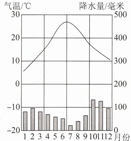 9. 下列气温年变化曲线和逐月降水量图中,与该区域气候特征相符的是(