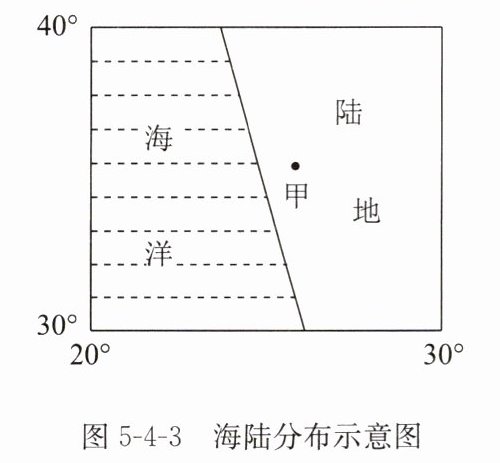 某学习小组绘制了一幅海陆分布示意图(图5-4-3)。读图,回答4、5题。