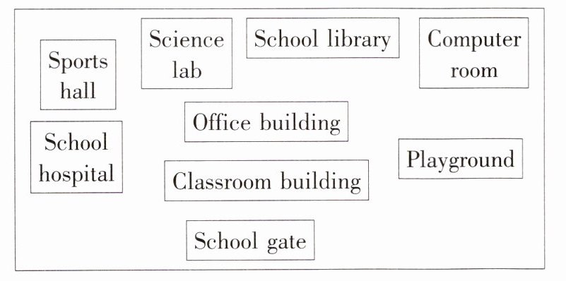 12. There are six buildings in the school. 13. Two buildings./ The science building and the dining hall. 14. It's between the sports hall and the office building. 15. I think Daisy's school is big and beautiful. (答案不唯一,言之有理即可)
