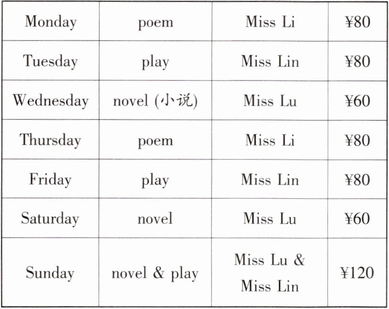 )24. Li Ming wants to go to the club on Tuesday and Friday. He needs to pay ______ a week.