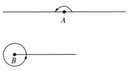 3. 以点 $A$ 为顶点画一个平角,以点 $B$ 为顶点画一个周角。