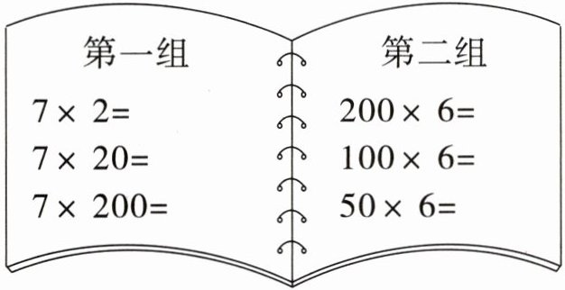 1. 观察第一组算式,发现:一个因数不变,另一个因数不断变大,积也(
