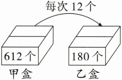 4. 甲、乙两个盒子分别放了 $612$ 个乒乓球和 $180$ 个乒乓球。如果每次从甲盒里拿出 $12$ 个放入乙盒,那么需要拿几次两个盒子里的乒乓球就一样多了?