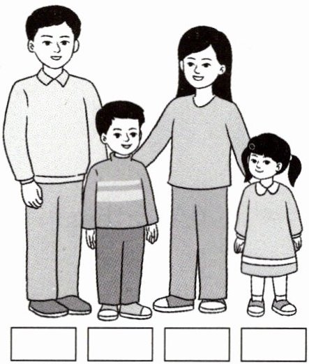 Hello! My name is Bill. Look! This is my family. This is my mother. Her name is Sue. This is my father. His name is Thomas. This is my little sister. Her name is Cindy. I love my family.