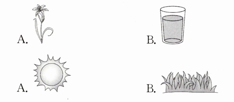 |A. flowers|B. grapes|C. oranges|D. sun|E. grass|F. air|