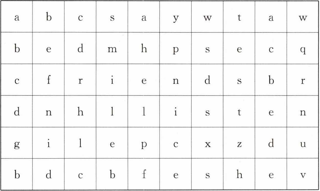 5. friend: 第三行第2-7列(f,r,i,e,n,d)