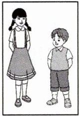| A. He | B. She | C. His | D. Her | E. thin | F. short |