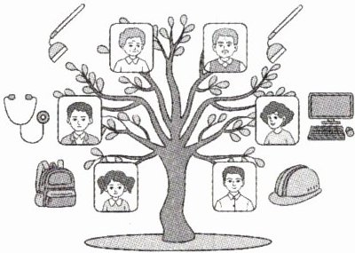 Hello! My name is Tina. I am a girl. Look! This is my family tree. I have a big family. They have different jobs. They are all 1. ____ (