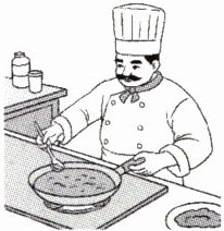 ) 4. —What's your father's job? —He's a cook.(