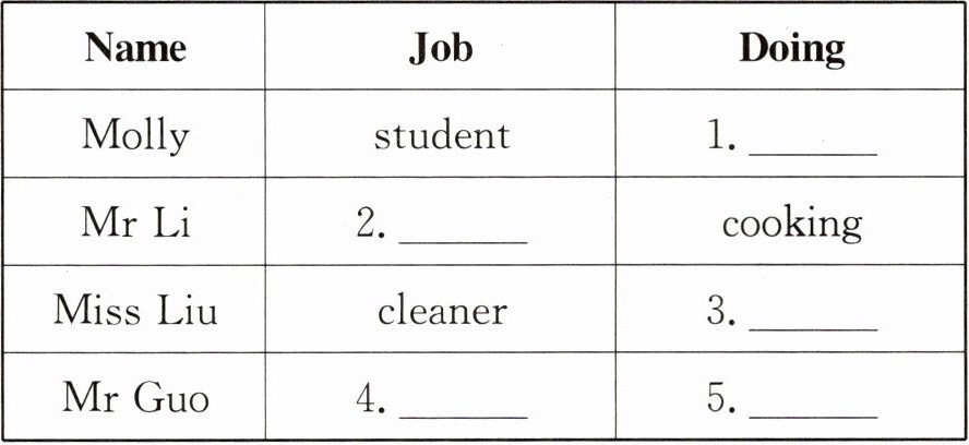 I'm Molly. I'm in the Xiyanghong old people's home. This is Mr Li. He is a cook. He can cook good food. Now he is cooking for the old men. Miss Liu is a cleaner. She is making the bed for them. Mr Guo is a police officer. He is telling funny stories. What are the students doing? Look! Five girls are singing old songs. Two boys are doing taijiquan. Others are cleaning the room. Where am I? Oh, I am talking with an old man.