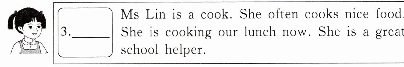 ) 2. ______ is cooking our lunch. A. Ms Lin