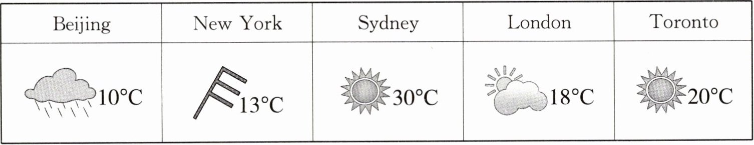 | $10^{\circ}C$ | $13^{\circ}C$ | $30^{\circ}C$ | $18^{\circ}C$ | $20^{\circ}C$ |