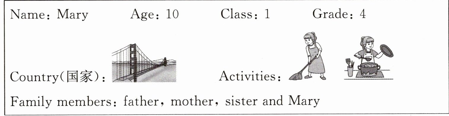 | Name: Mary | Age: 10 | Class: 1 | Grade: 4 |
