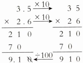 (1)新考法知识本质 如图是笔算$3.5×2.6$的过程,用到的知识点有(