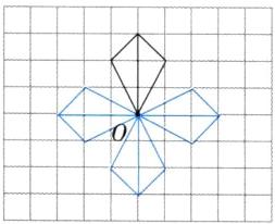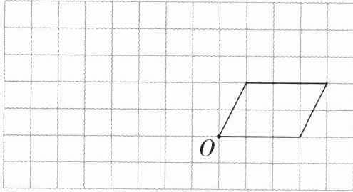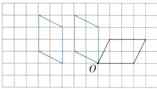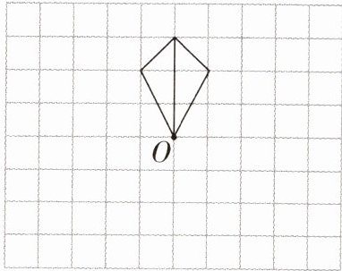 4. 把下面的图形先绕点 $ O $ 沿逆时针方向旋转 $ 90^{\circ} $,再向左平移 $ 3 $ 格。分别画出旋转和平移后的图形。